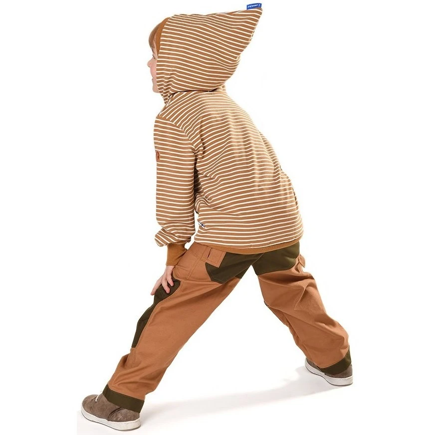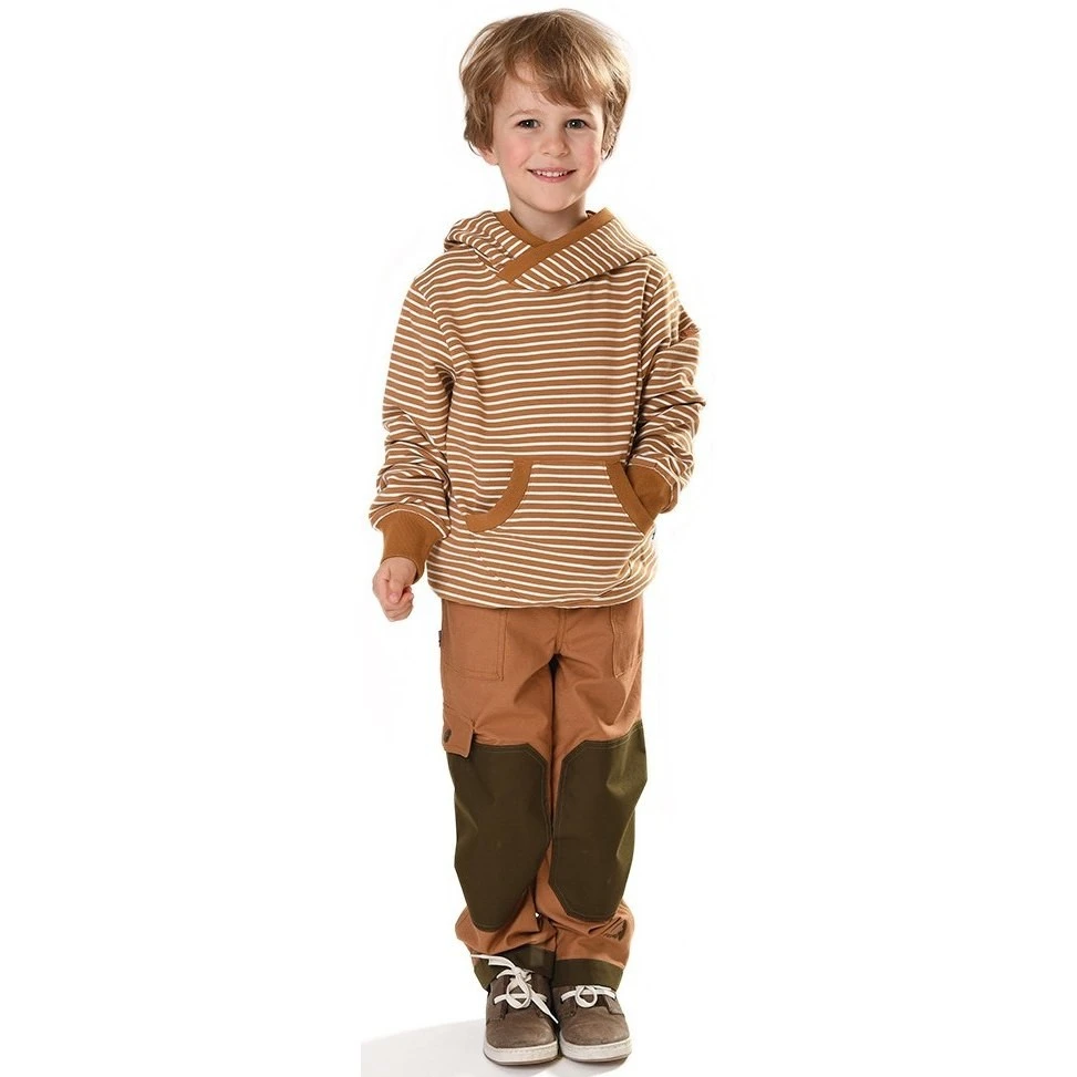 Bequeme Finkid Kinderhose mit extra Verstärkungen an Knien, Po und unterem Beinabschluß. Die gute Paßform und das angenehme Material aus Baumwollcanvas geben einen tollen Tragekomfort. Durch den innenliegenden verstellbaren Gummibund ist die Cargopants in der Taillenweite individuell anpaßbar. Die Cargotaschen sehen nicht nur cool aus, man kann auch wichtige Kleinigkeiten darin verstauen. Sehr bleiebt als Wanderhose, für die Schule und als „Schönwetterhose“ für den Waldkindergarten. Da die Besätze wasserfest sind, saugt sich das Material an diesen Stellen beim hinknien oder hinsetzen auf einen moosigen Baumstamm nicht sofort mit Nässe voll.