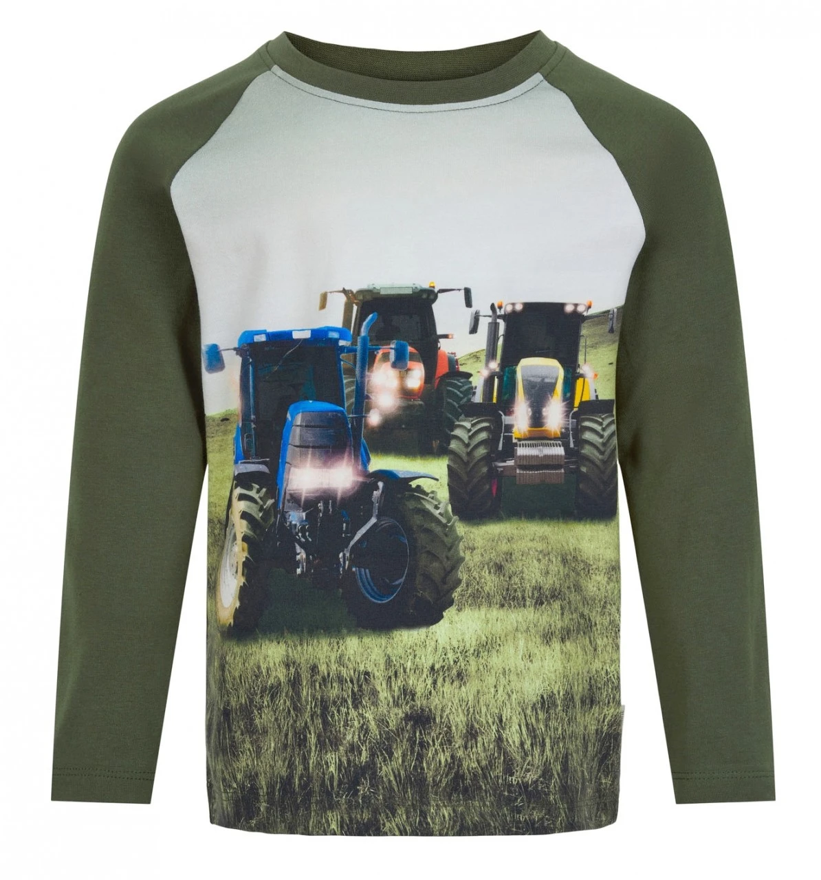 Minymo Langarmshirt olivgrün mit 3 Traktoren